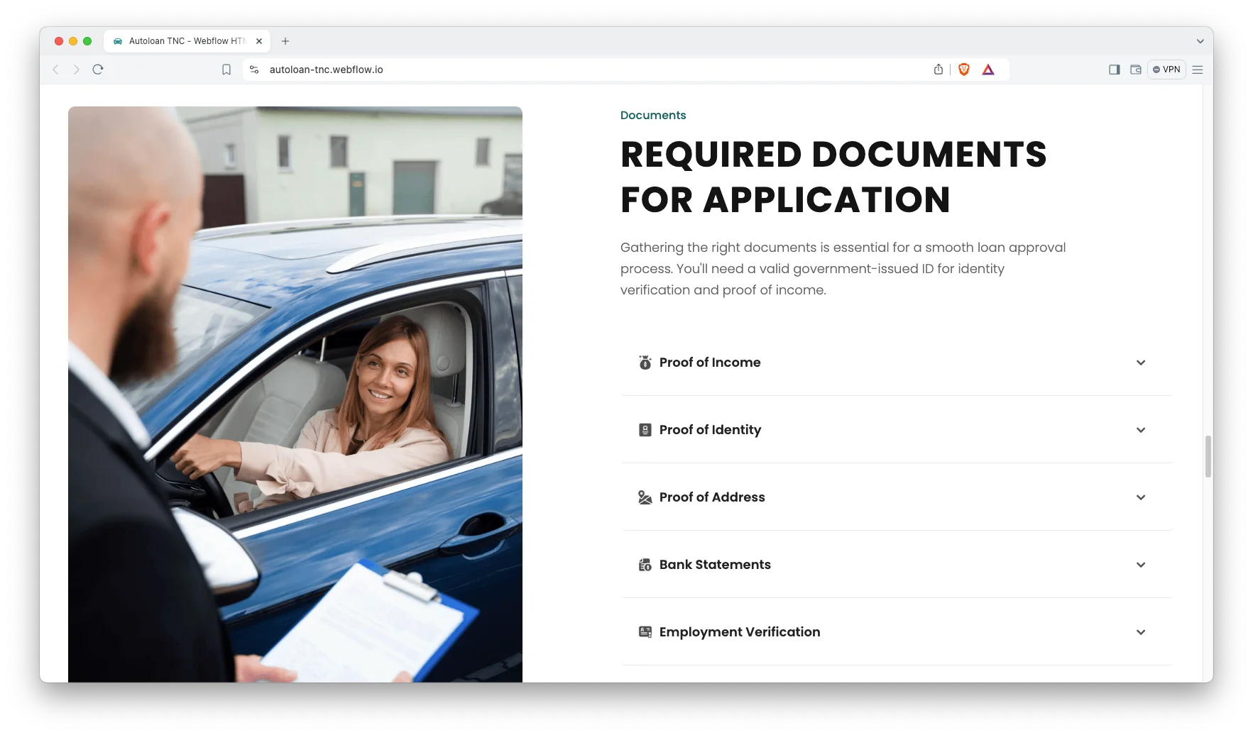 Key Features of AutoLoan TNC – Webflow Banking Template