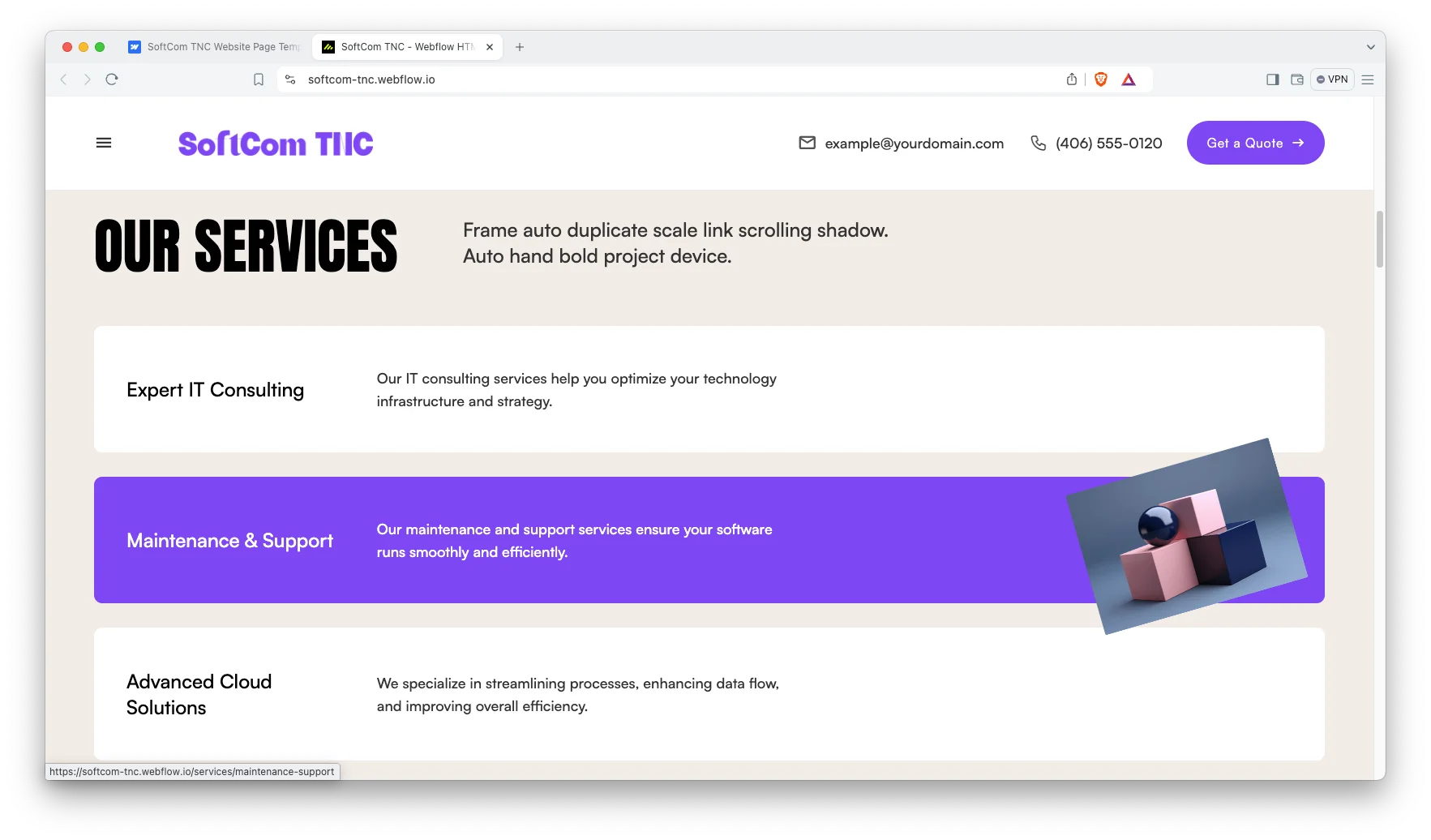 Improve your software business with SoftCom TNC. This sleek webflow template combines stunning design and dynamic animations to create a website that will impress your clients. With its world-class design and subtle animations, it’s perfect for creating a strong, reliable online presence. You will also get a powerful CMS, and a responsive design. Showcase your agency with 3 different home pages and sell merchandise with 2 different product pages. If you want to learn more about this product, please visit here.
