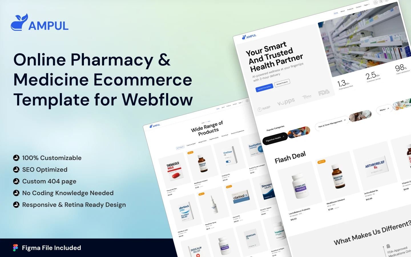 Ampul is a clean and simple Webflow template made for online pharmacies and medical shops. It has a responsive design that makes shopping online easy and convenient. Ampul provides easy navigation and safe payment options. You can fully customize it with strong CMS and e-commerce tools. This template helps you create a professional brand, improve communication with patients, and boost sales. With ready-made pages and smart features, Ampul lets you launch your online pharmacy quickly and smoothly. If you want to know more about this template, please visit here.
