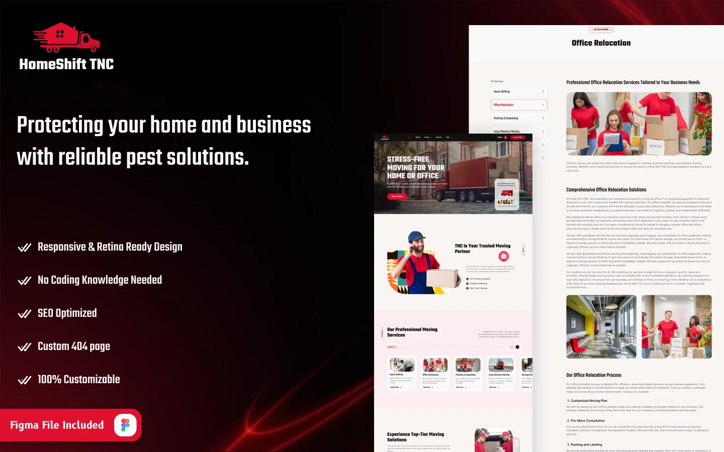 Suitable For: HomeShift TNC is specially designed for moving, logistics, transportation, and shipment companies, or more developed with Webflow.