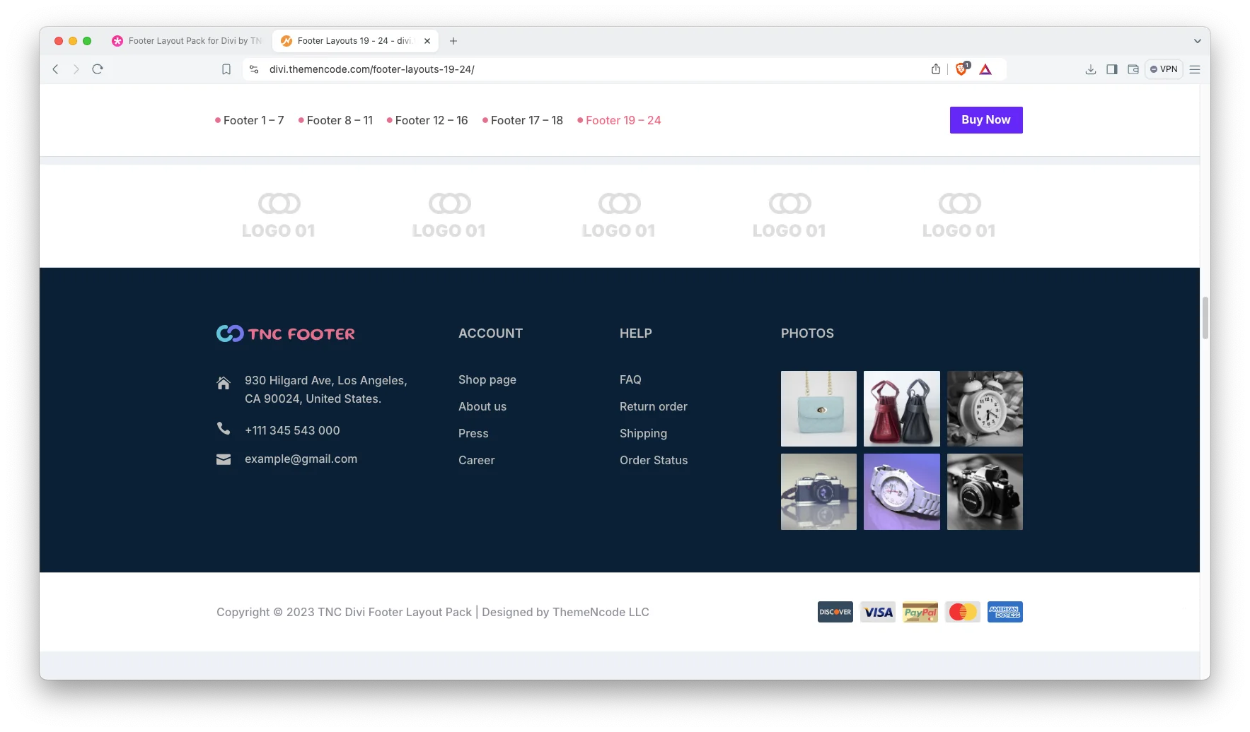 - Explore and Download: Visit the Elegant Themes Marketplace and purchase the Footer Layout Pack for Divi by TNC. Once you complete the purchase, download the pack to your computer.