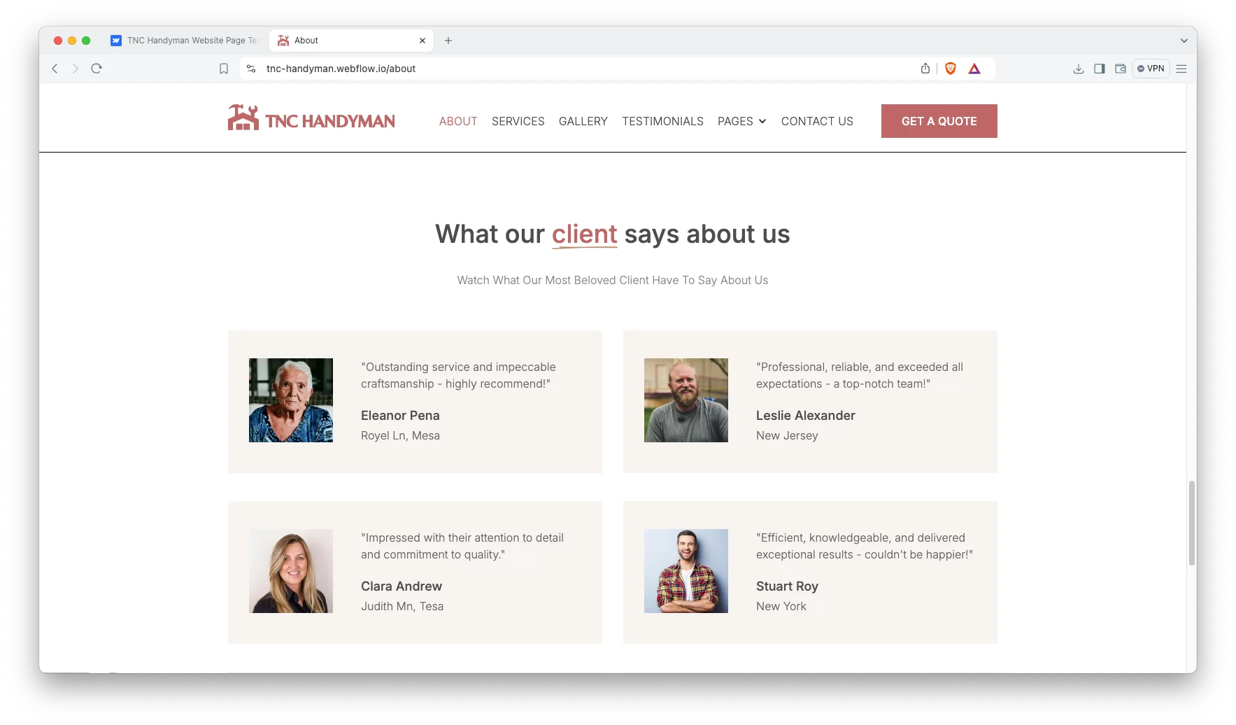 - Webflow Optimized: TNC Handyman is a Webflow optimized template and offers lightning-fast performance and user-centric interface for stunning websites.